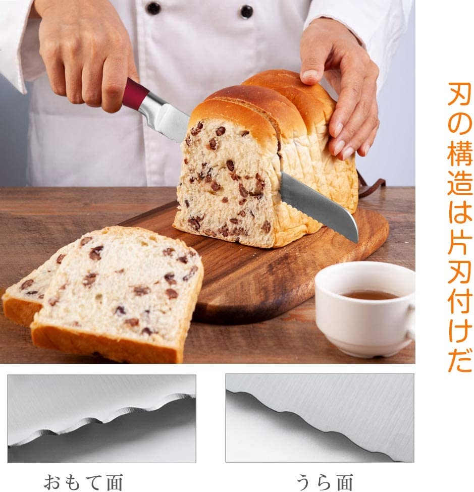 ●【パン切り包丁】サイズ:全長約340mm、刃渡り:約200mm 高品質の波刃で、切りにくいフランスパンや ふかふかのパンでもスムーズにカットできる